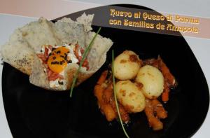 aquí os dejo mi receta, que es una readaptacion de los famosos huevos fritos al parmigiano reggiano de tony botella , aquí combino los 2 elementos (huevos y queso) y está bien acompañado por unas patatitas francesas y zanahorias baby.