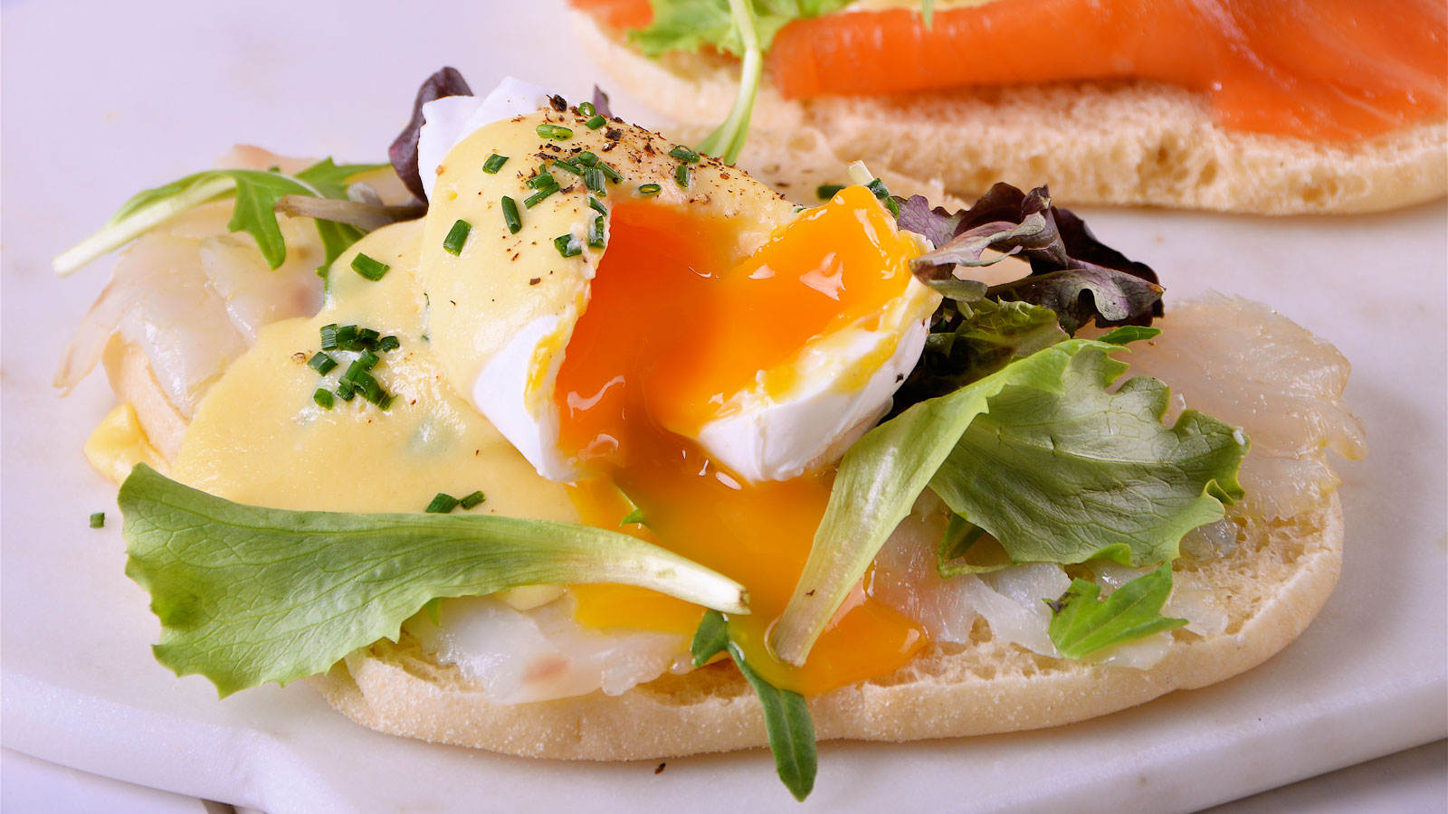 Encima colocamos un huevo y lo cubrimos con la salsa holandesa recién hecha. Espolvoreamos con cebollino picado y servimos rápidamente.