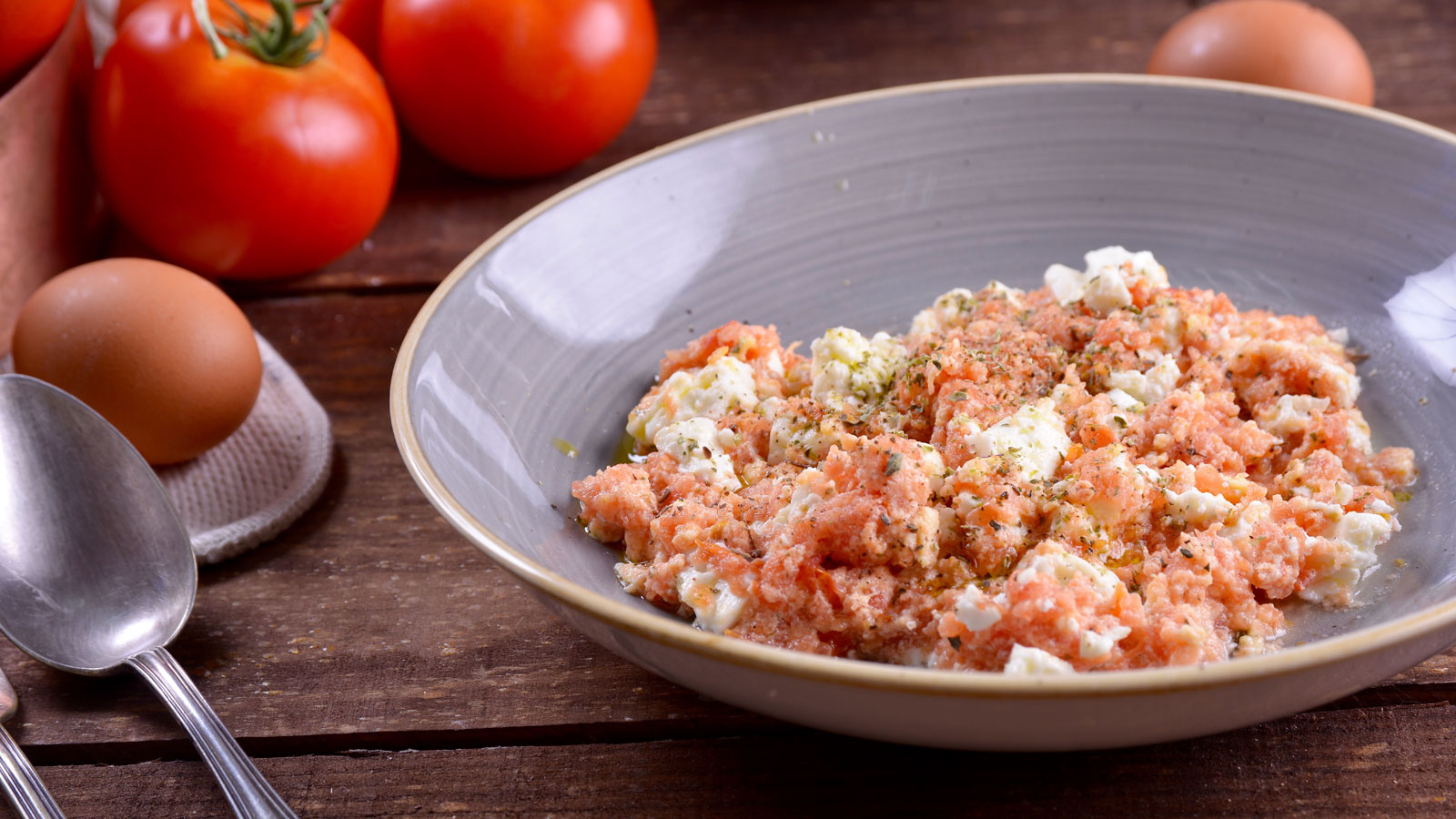 En el capítulo 4 del programa Cocina griega, la cocinera María Zannia prepara unos Huevos rotos con tomate y queso feta (Kayanás). Una receta tradicional de Grecia con productos típicos de la dieta mediterránea.