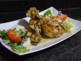 Jamoncitos de pollo horneados en salsa de naranja, mostaza a la miel y al vino blanco