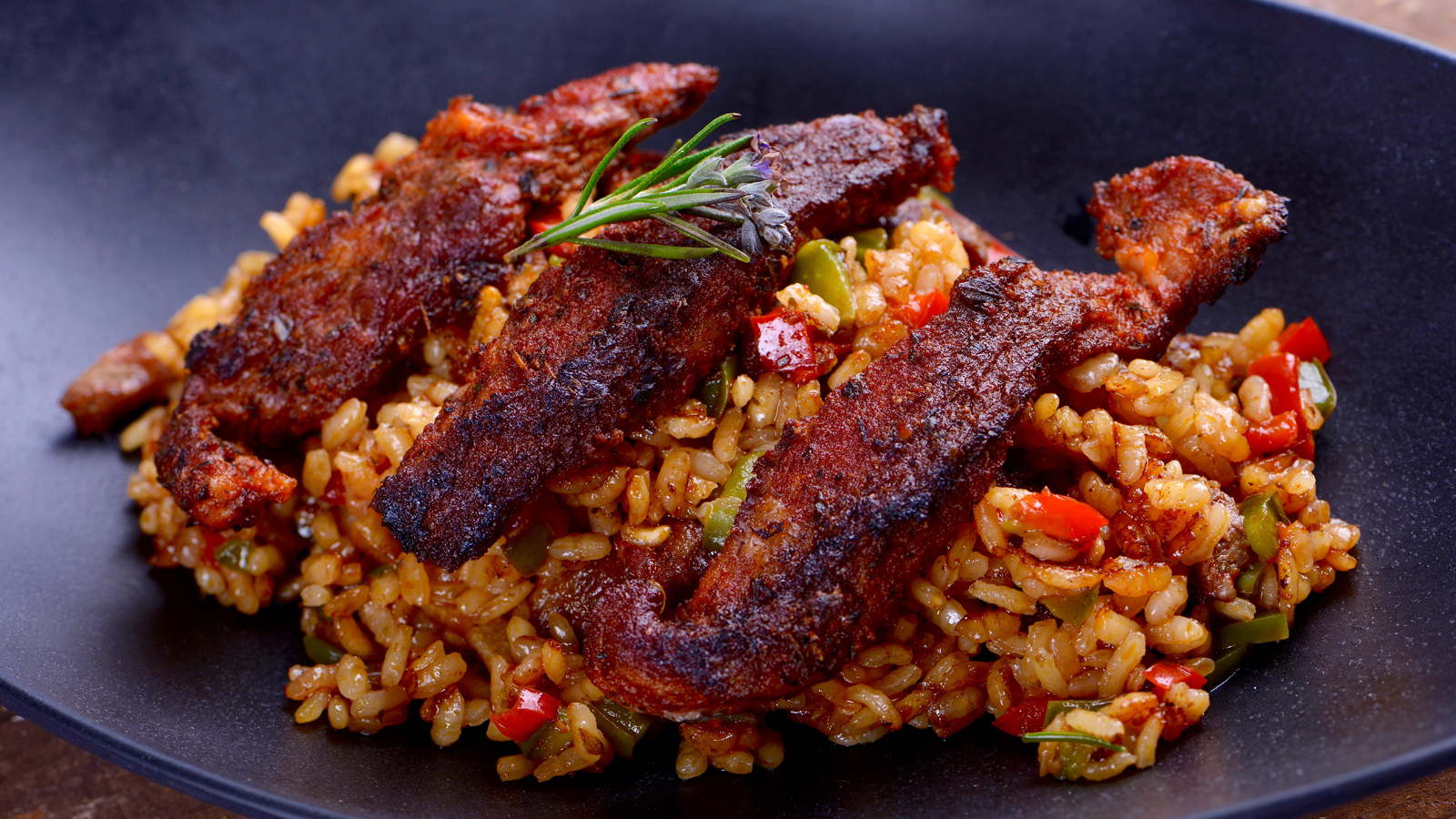 Servimos el arroz, colocamos las lágrimas por encima y decoramos con una rama de romero.