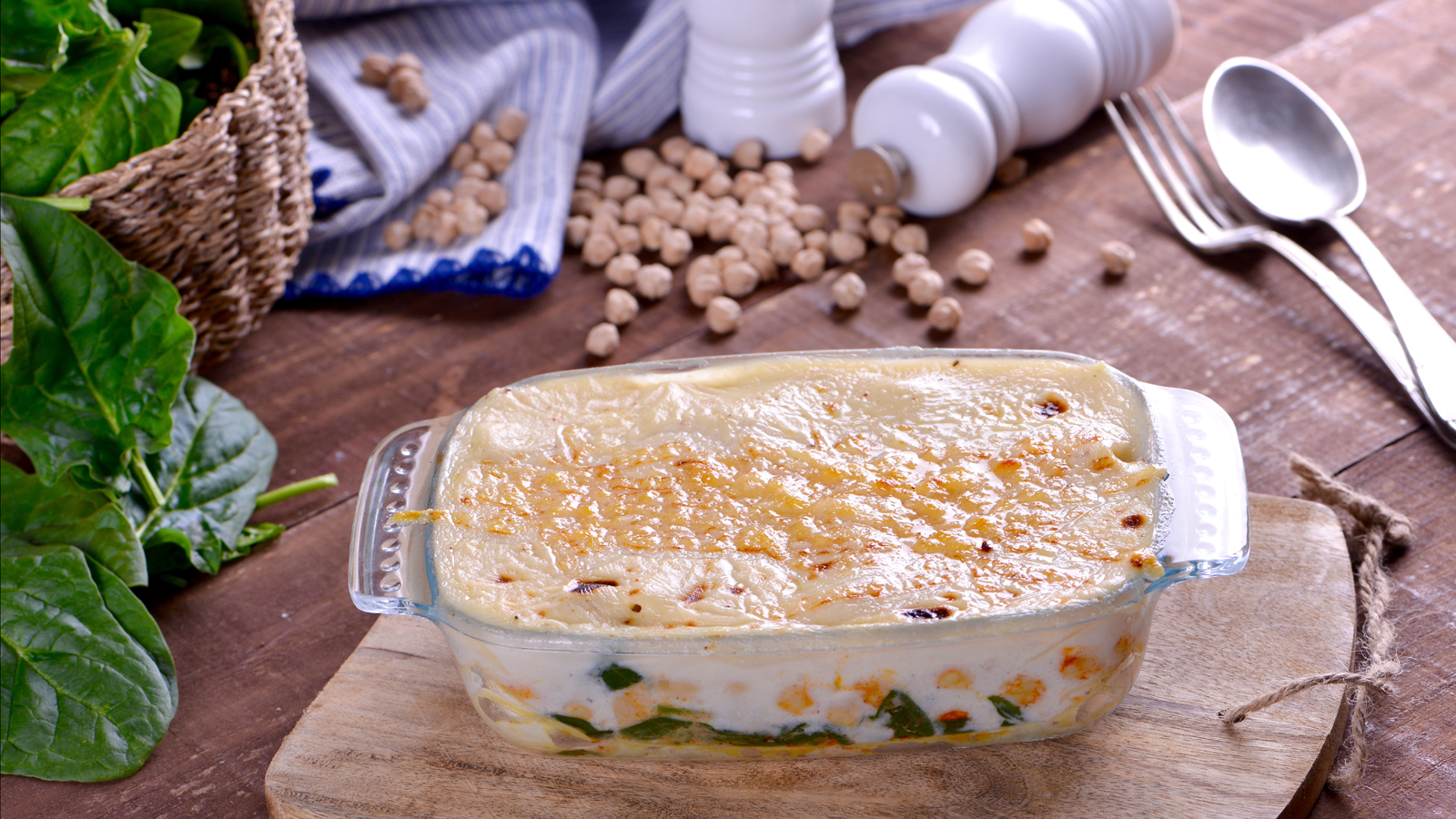 En el capítulo 704 del programa de televisión Cocinamos contigo T6, Sergio Fernández prepara la receta de Lasaña de espinacas y garbanzos.