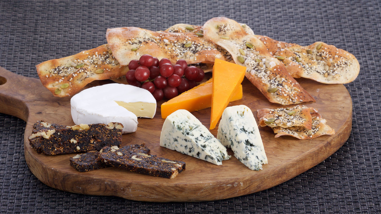 Emplatamos los lavash y los acompañamos con el pan de higos y los quesos.