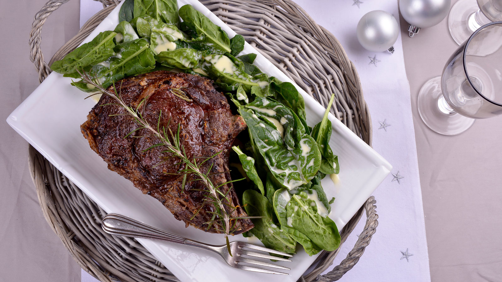 Lomo de buey a baja temperatura y ensalada de espinacas