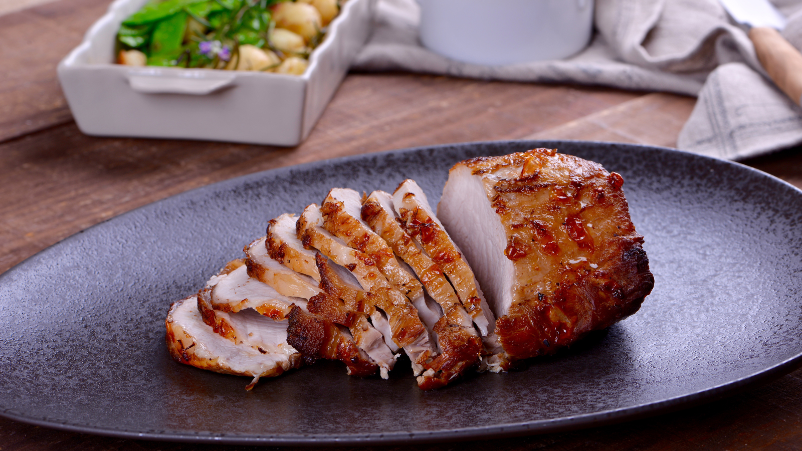 En el capítulo 707 del programa de televisión Cocinamos contigo T6, Sergio Fernández prepara la receta de Lomo de cerdo al chocolate.