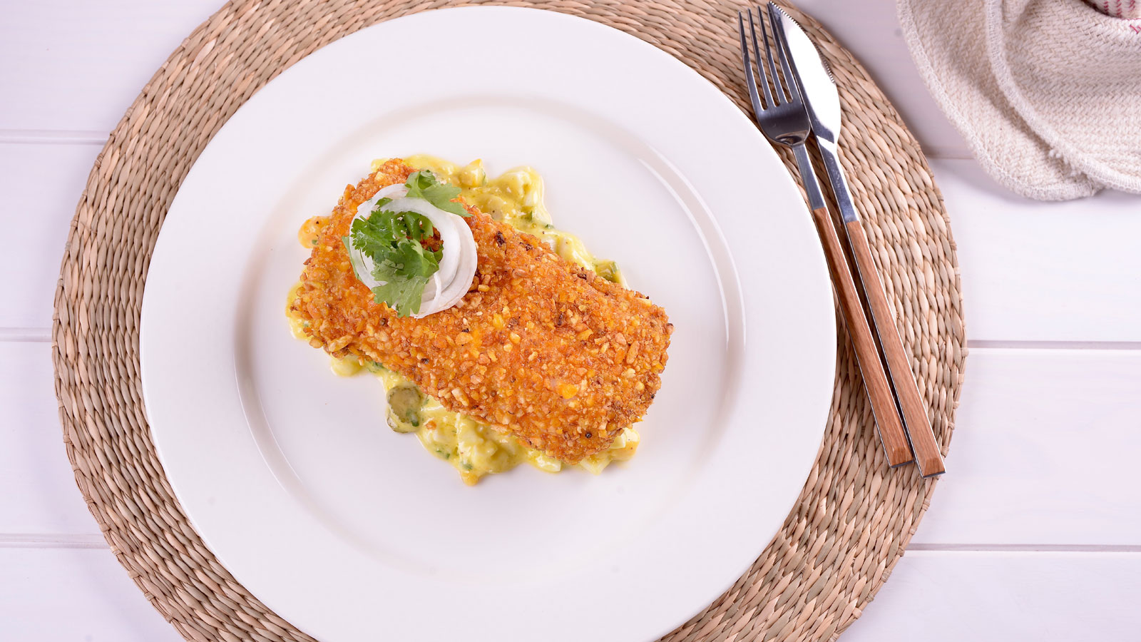 Merluza súper crujiente con tártara de hinojo