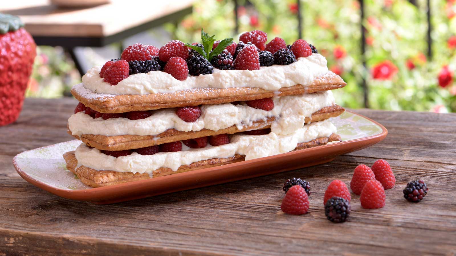 En el capítulo 10 del programa de televisión Verano Fácil, Loleta, Lola Bernabé López-Cózar prepara la receta de Milhojas de frambuesas con nata.