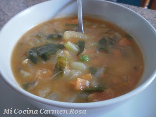 Cortar en trozos muy pequeños: apio, zanahoria, puerro, nabo, col, acelgas y patatas.