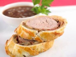 Mini solomillos wellingtons con colmenillas, jerez y tomillo