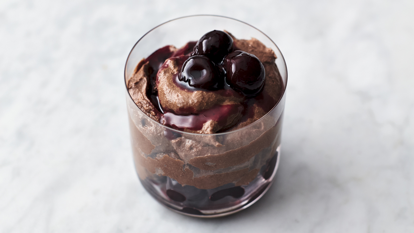 En el capítulo 3 del programa de televisión Rápido y fácil con Jamie, Jamie Oliver prepara la receta de Mousse de chocolate y cerezas (Cherry chocolate mousse).