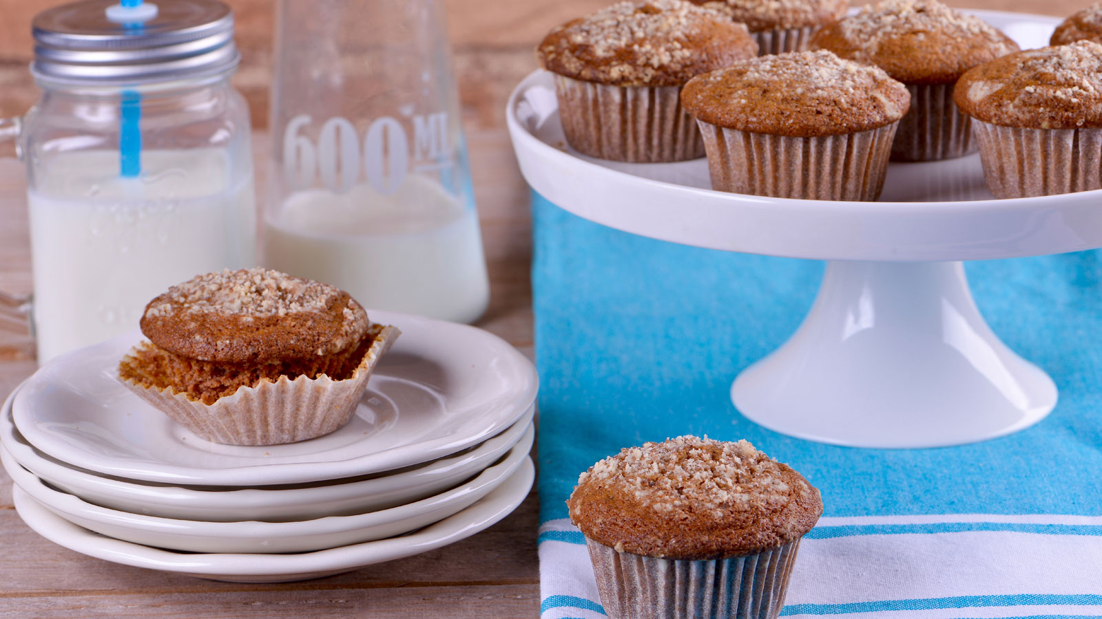 Espolvoreamos el topping encima de cada muffin y los horneamos a 180ºC durante unos 20-25 minutos o hasta que al introducir un palillo salga limpio.