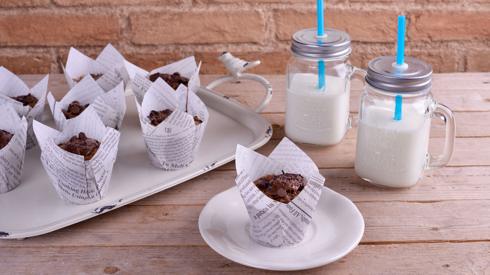 Decoramos los muffins con 3 cucharadas de crema de chocolate y avellana.