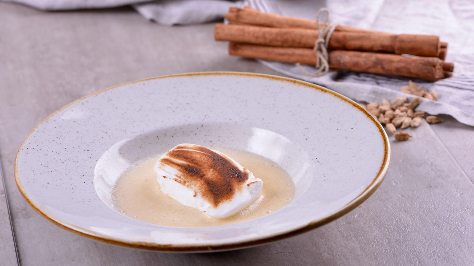 Natillas de cardamomo con isla flotante