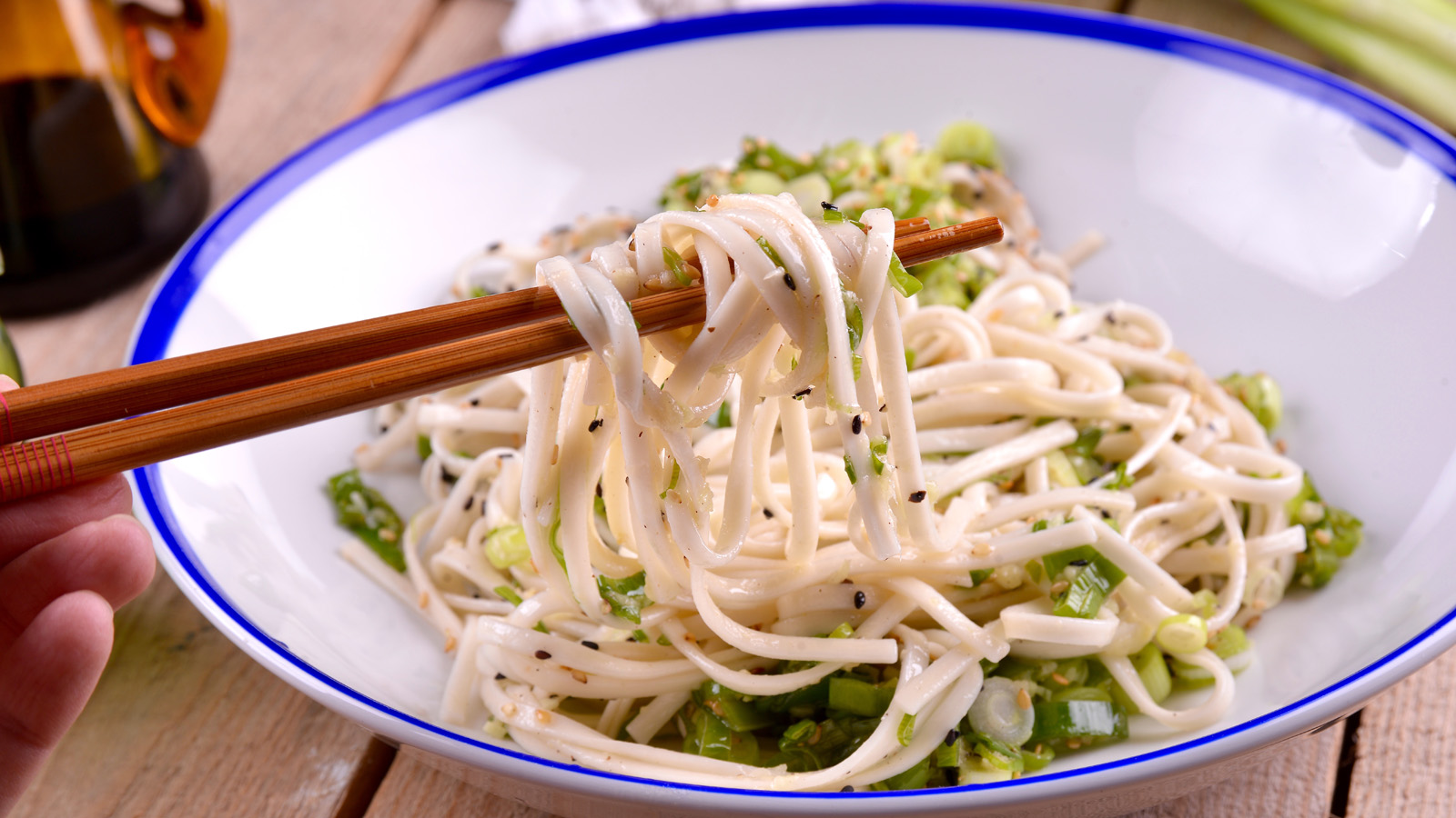 En el episodio 1 del programa de televisión Muy Johann, el cocinero Johann Wald prepara una receta de Noodles con cebolleta y jengibre.