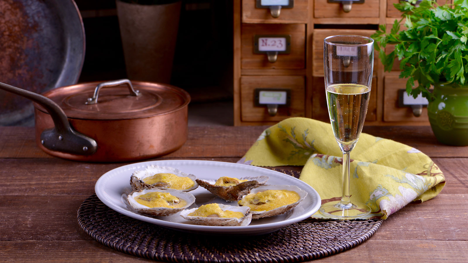Ostras al horno con salsa de champán