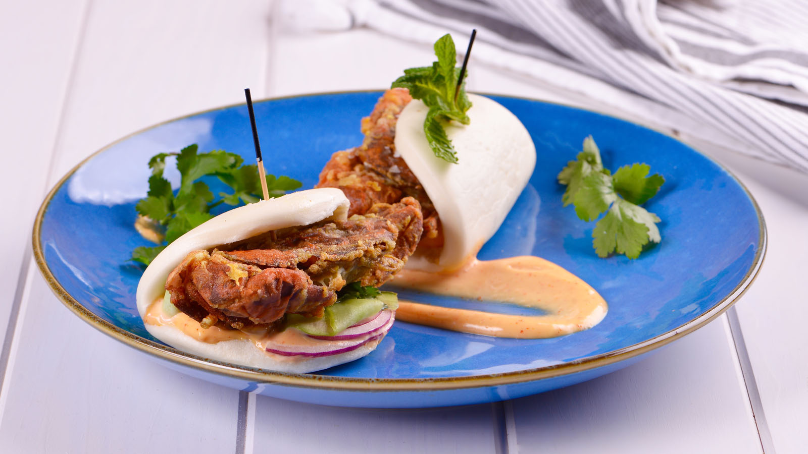 Pan bao con cangrejo softshell