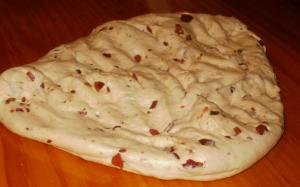 Sofreír muy lentamente y en su propia grasa el beicon y jamón ibérico. Mientras elaborar la masa del pan según instrucciones del fabricante, (es muy fácil, sólo mezclar los ingredientes del paquete y dar el reposo necesario). Antes del reposo le añado el refrito con 2-3 cdas. de la grasa que a soltado el ibérico y amaso un poco para distribuir muy bien todos los ingredientes.