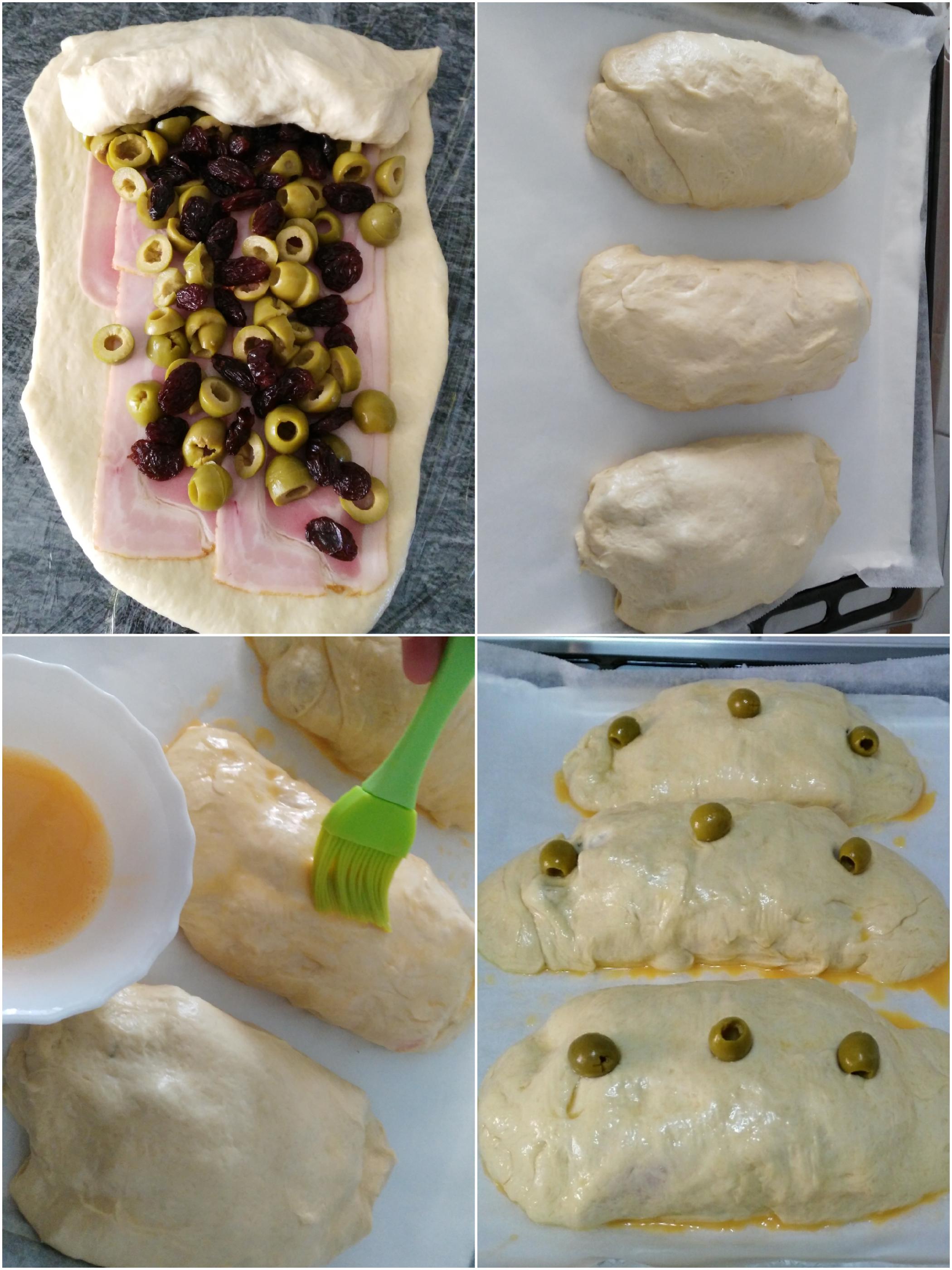 Enrolla dando forma de cilindro y pinta con huevo para que te queden doraditos.