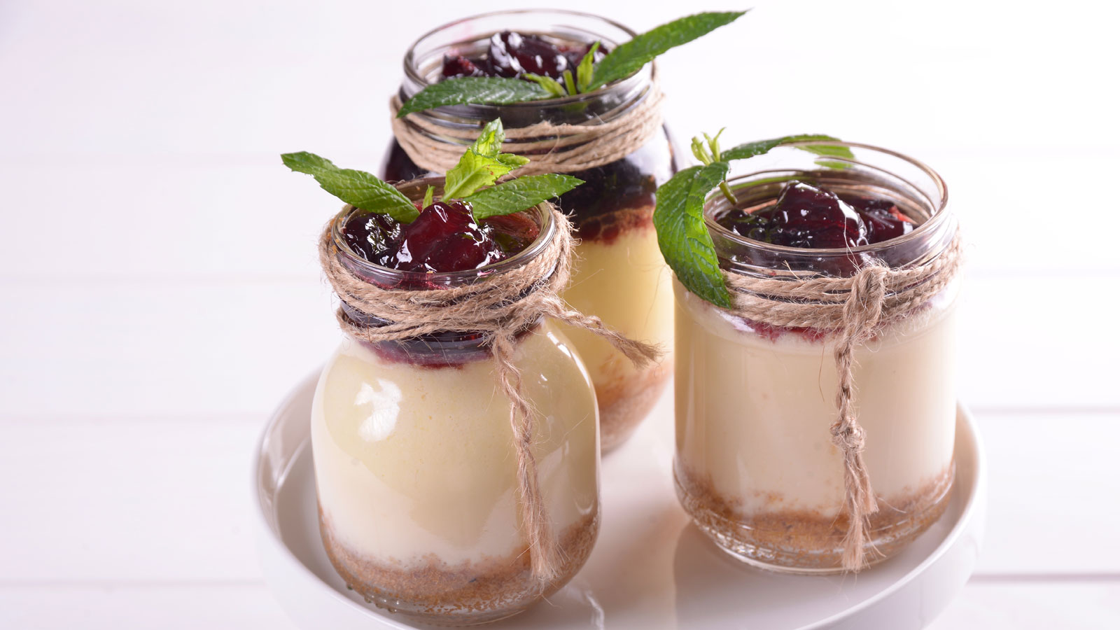 Servimos con la confitura por encima y decoramos con unas hojas de hierbabuena fresca.