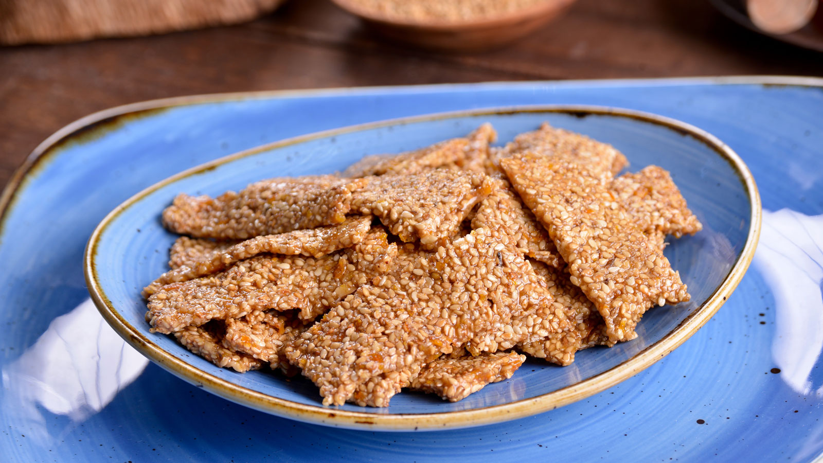 En el capítulo 14 del programa de televisión Cocina griega, la cocinera María Zannia prepara esta deliciosa receta de Pastel de sésamo y miel. Se trata de un postre dulce típico de la cocina de Grecia elaborado a base de especias, frutos secos y miel. En griego, se denominan pasteli.