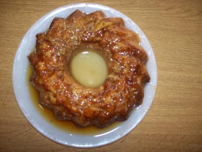 y se vierte en un molde previamente con caramelo liquido (si no gusta el caramelo, tambien sale bien sin caramelo). Se puede hacer en el microondas o en el horno previamente caliente a 180 grados, de 30 a 40 minutos. A mi me gusta más en el horno. Sale buenisimo, y gusta a todos, pequeños y grandes.