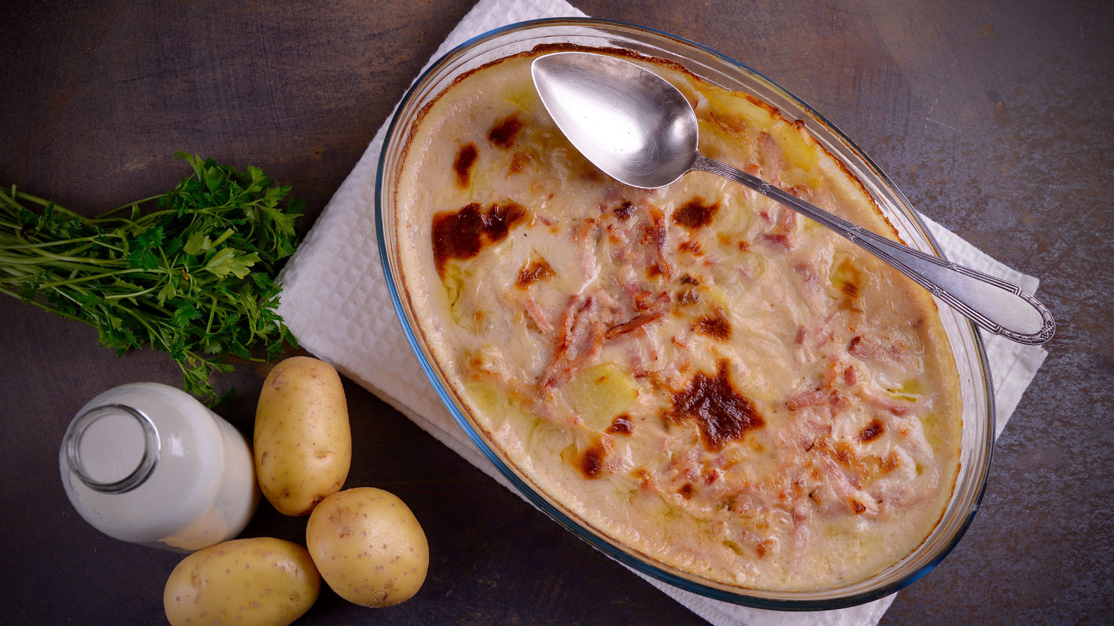 Patatas con bacon y bechamel