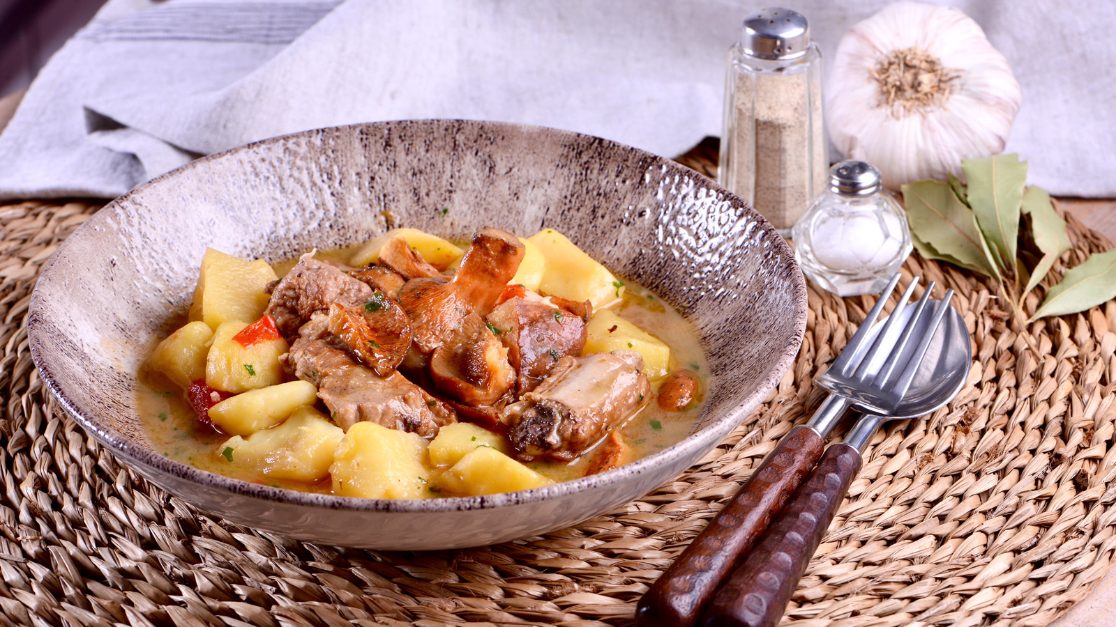 En el capítulo 20 del programa de televisión Sabor de Hogar, Juan Pozuelo prepara la receta de Patatas con costillas y níscalos.