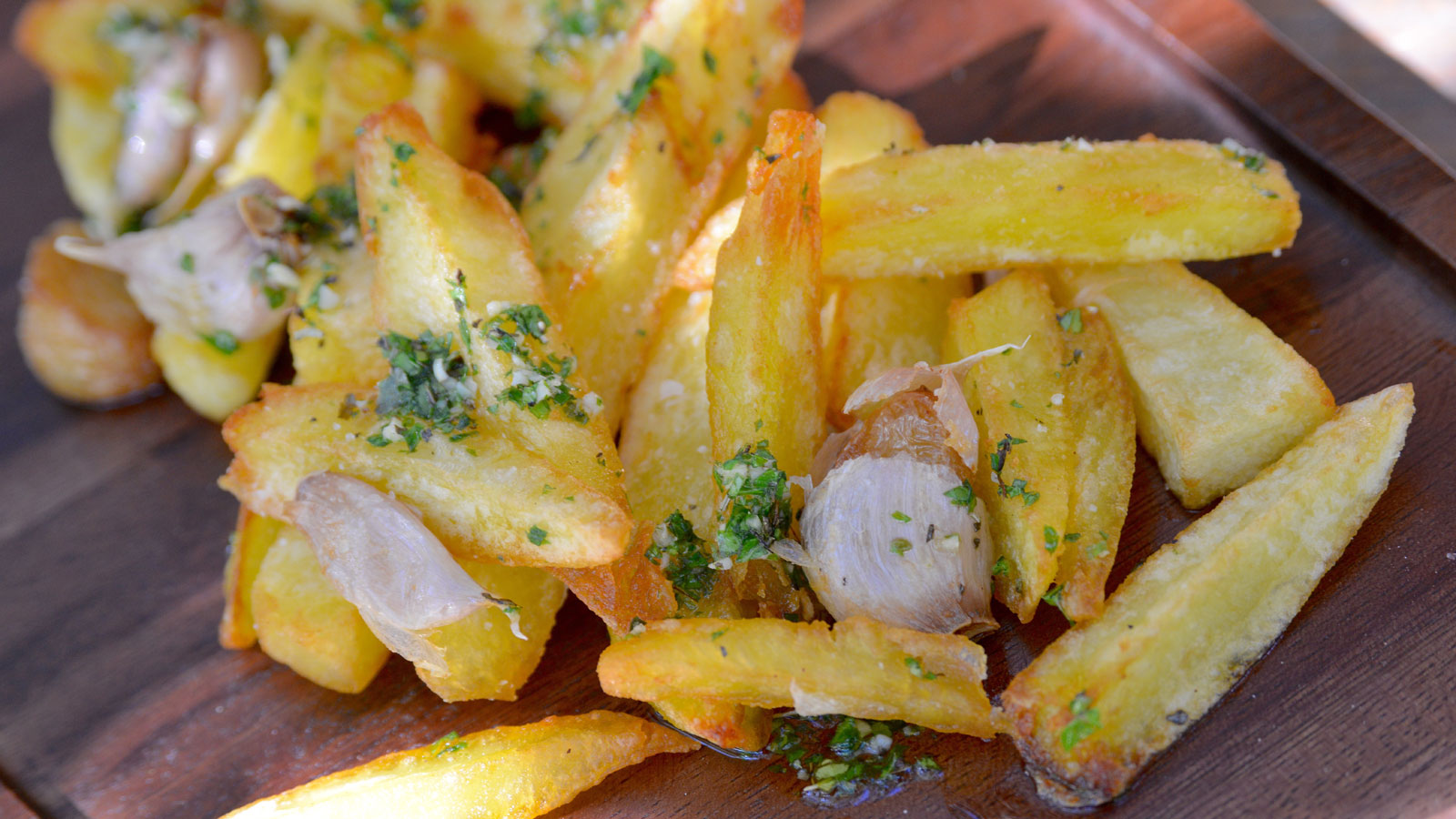 En el capítulo 13 del programa de televisión Cenas al aire libre, el cocinero argentino Pablo Vicari nos enseña a preparar una receta de Patatas fritas al ajo y provezal para una cena canalla.