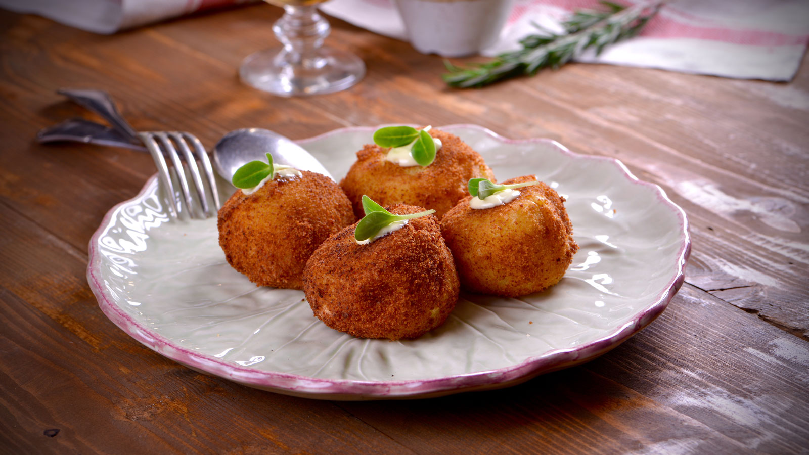 En el capítulo 7 del programa de televisión Cocina con Blanca, Blanca Mayandía prepara la receta de Patatas rellenas de bacalao y gambas.