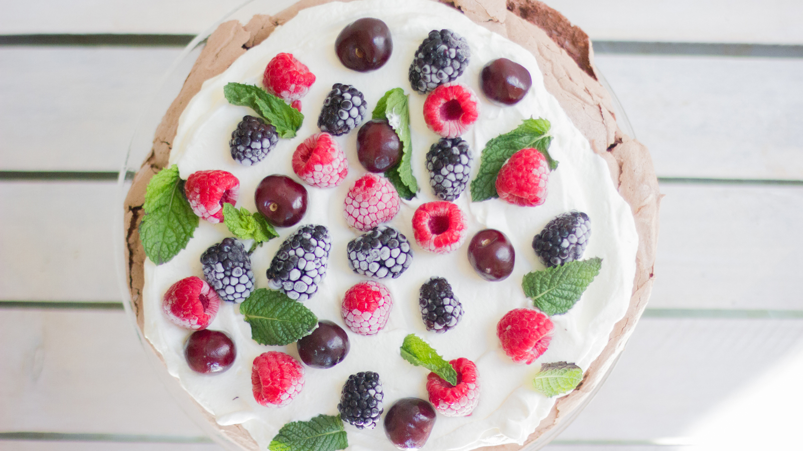 Pavlova rellena de nata y frutos rojos