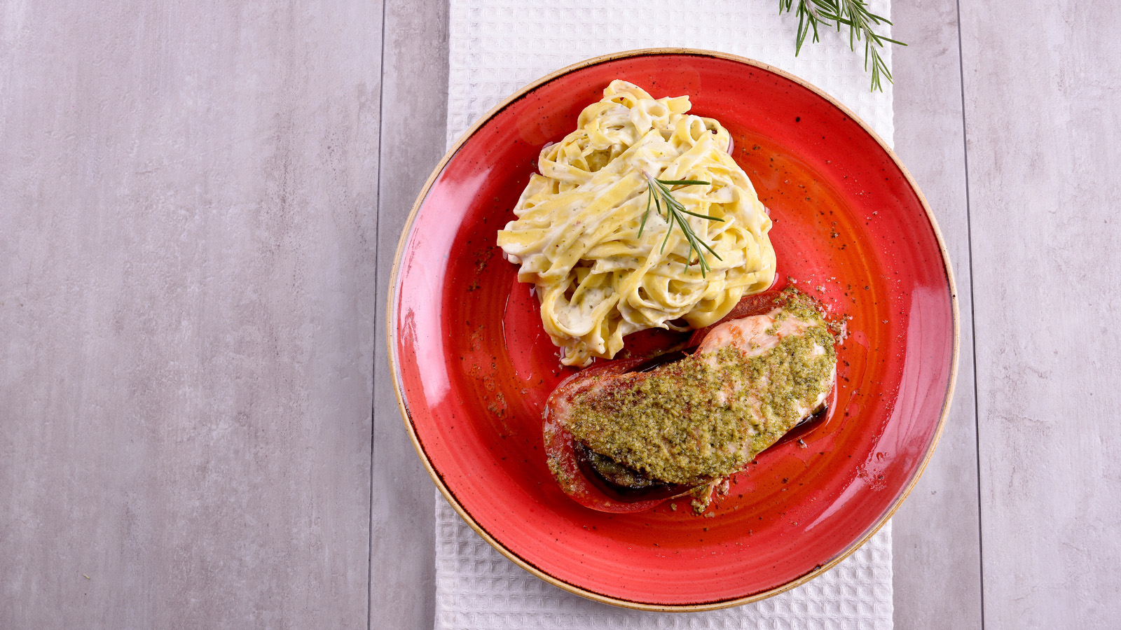 Por otro lado, hervimos la pasta fresca siguiendo las indicaciones del fabricante y la salteamos con aceite, abundante ralladura de limón y mascarpone y un poco de pesto.