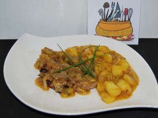 La carne la salpimentaremos, la rebozaremos con la harina y la doraremos en un wok, que tendremos al fuego, donde habremos obtenido la grasa de la piel del pato y ahí doraremos la carne, reservándola.