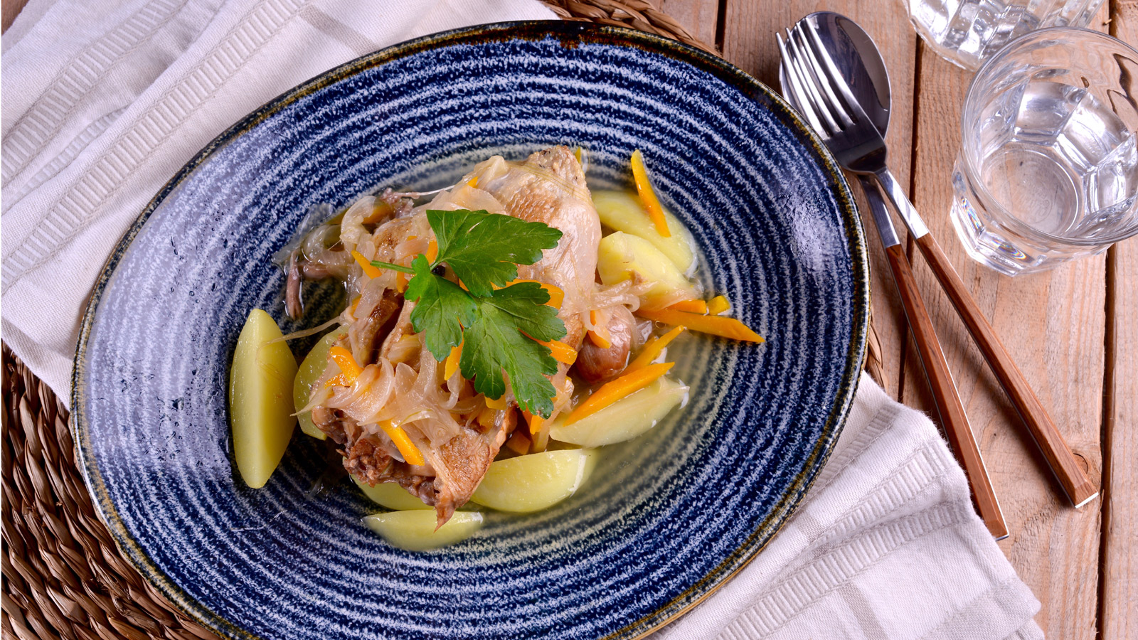 En el capítulo 7 del programa de televisión Sabor de Hogar, Juan Pozuelo prepara la receta de Perdices en escabeche con patatas.