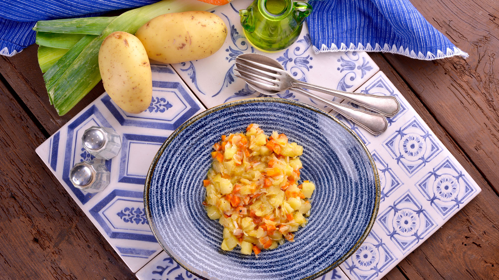 En el capítulo 18 del programa de televisión Cocina tradicional vasca, Luis Mokoroa prepara la receta de Perrupatata (Guiso de puerros con patatas).