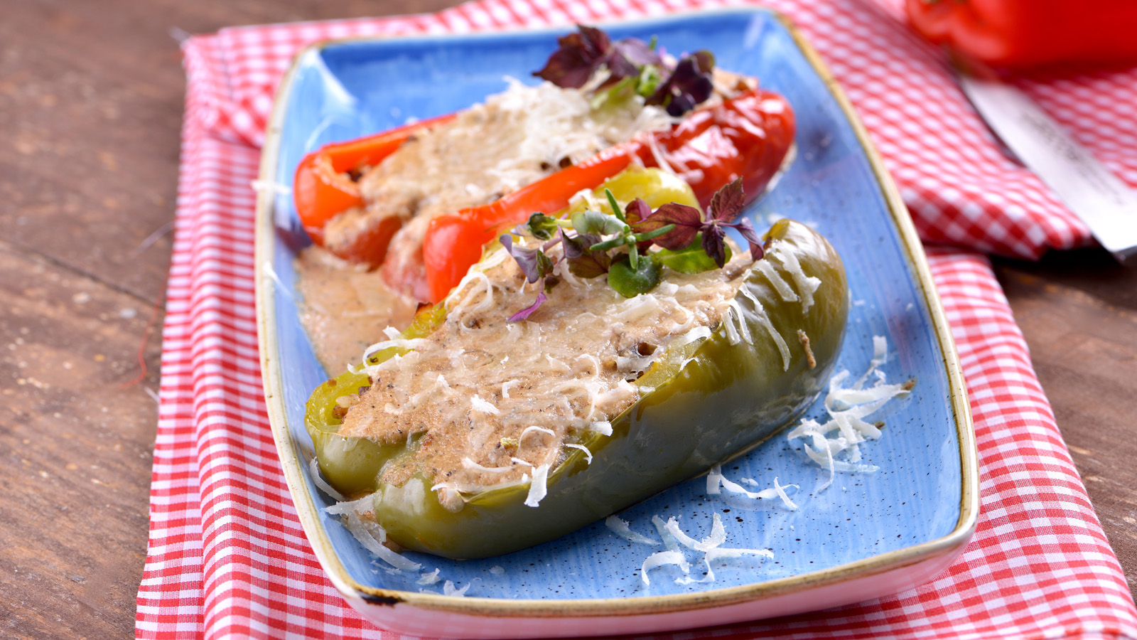 Pimientos rellenos en salsa de nueces