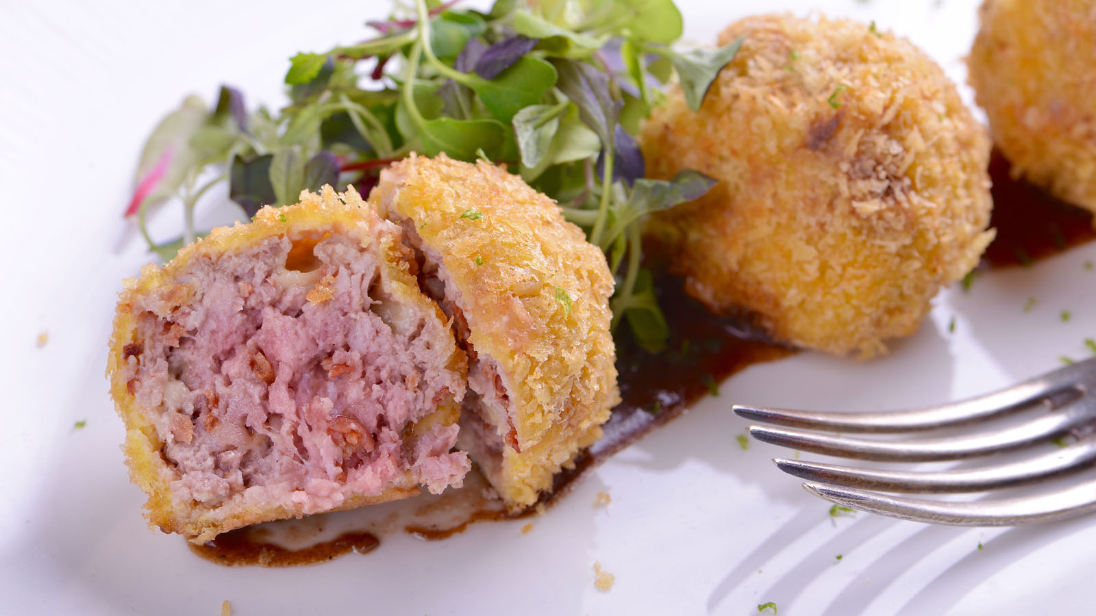 Batimos un huevo en un plato y pasamos las bolitas, primero por el huevo batido, y después por un bol con pan rallado crujiente.