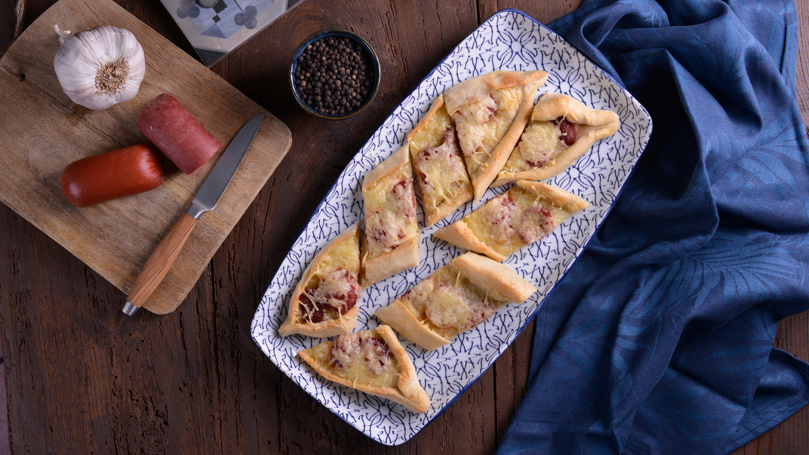 Pita de queso y chorizo turco (Kaşarlı Sucuklu Pide)
