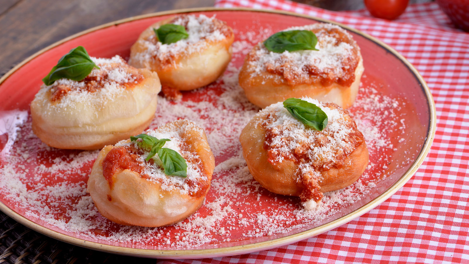 En el capítulo 12 del programa de televisión Cocina italiana con Matteo de Filippo, el cocinero italiano Matteo de Filippo prepara su receta de Pizzelle frita, pequeños bocados individuales de pizza con tomate y queso parmesano ideales como aperitivo.