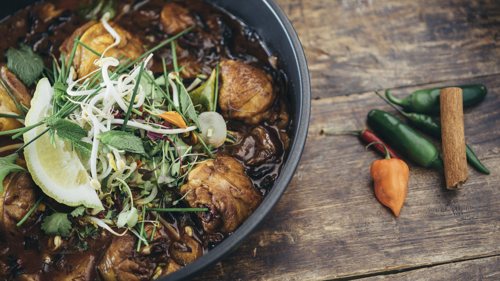 Después de 10 minutos le añadimos las hojas de limonero, un trocito de canela, clavo, Pimienta sichuan y anís estrellado.