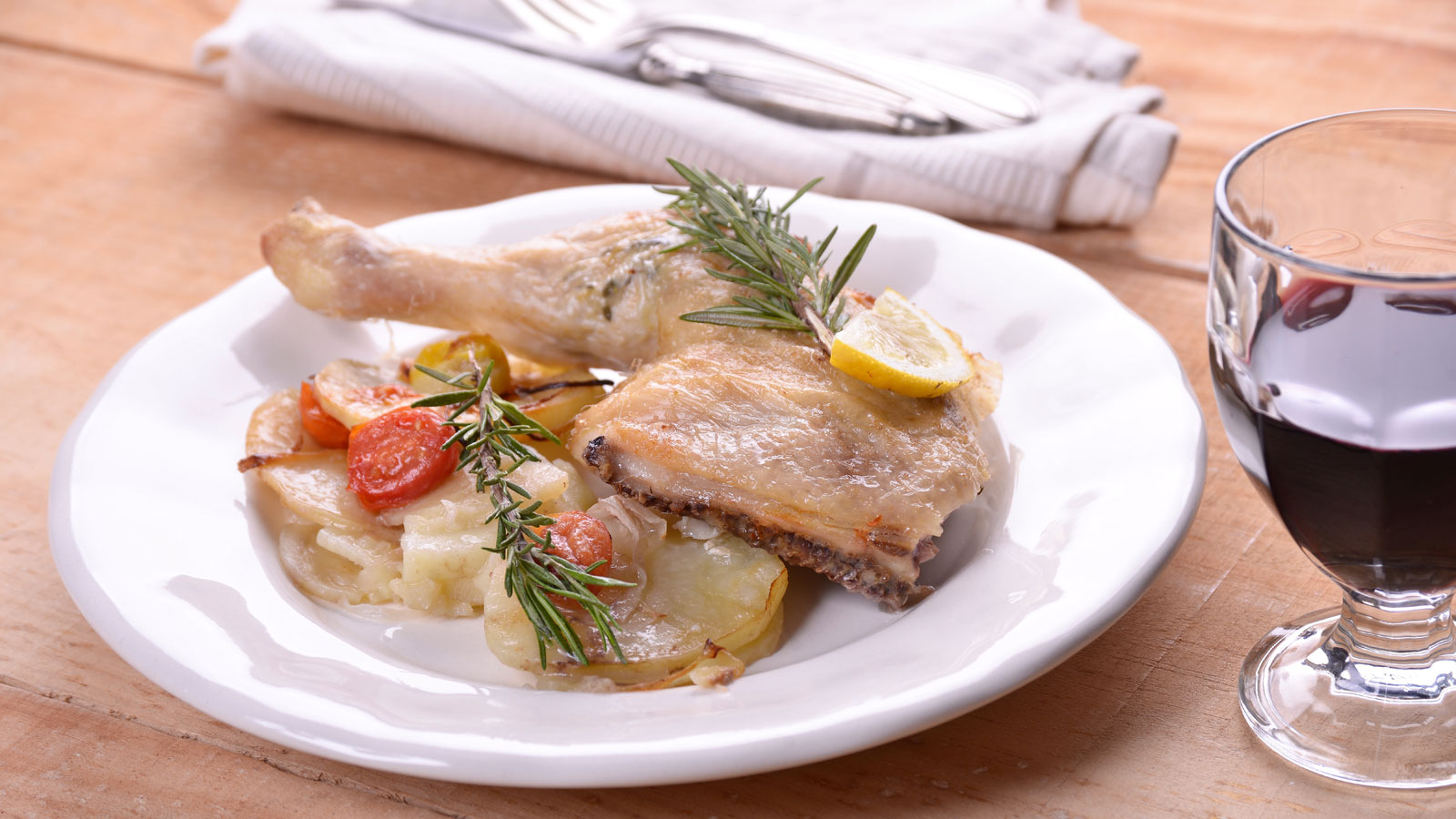 Sacamos del horno con cuidado de no quemarnos. Decoramos con una ramita de romero fresco y unas rodajas de limón.