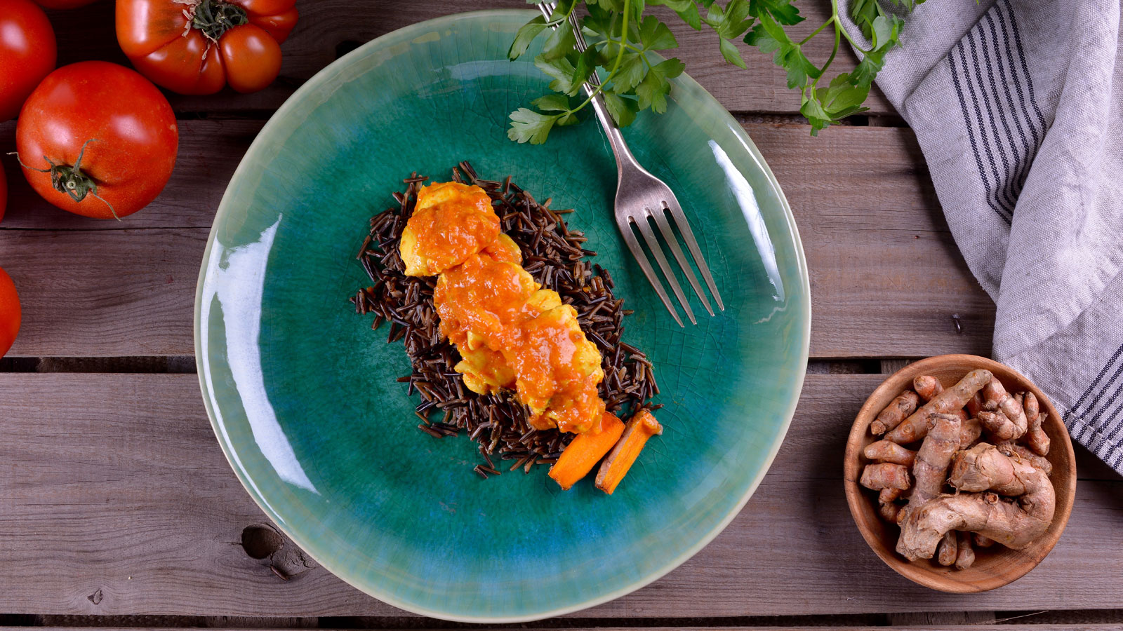 Pollo al curry con arroz salvaje