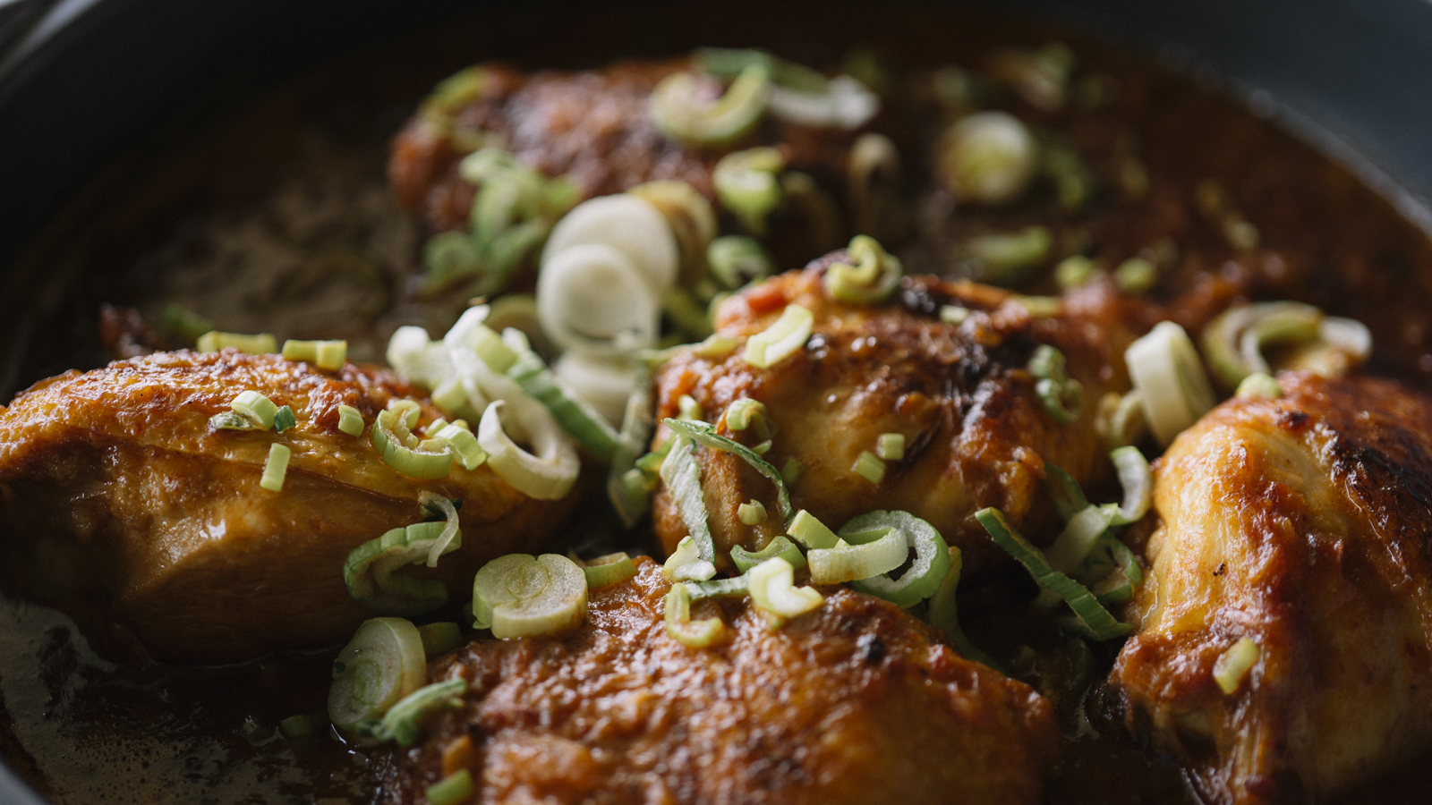 En una sartén con aceite marcamos el pollo hasta que se dore la piel.