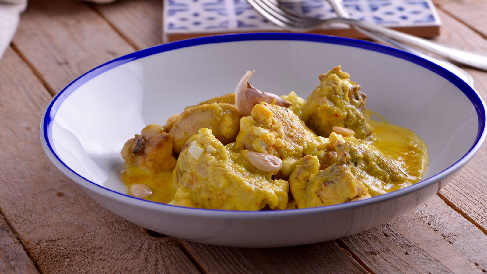En el capítulo 19 del programa de televisión Guisos de siempre, nuestro cocinero Juan Pozuelo prepara la receta de Pollo de corral en pepitoria con almendras.