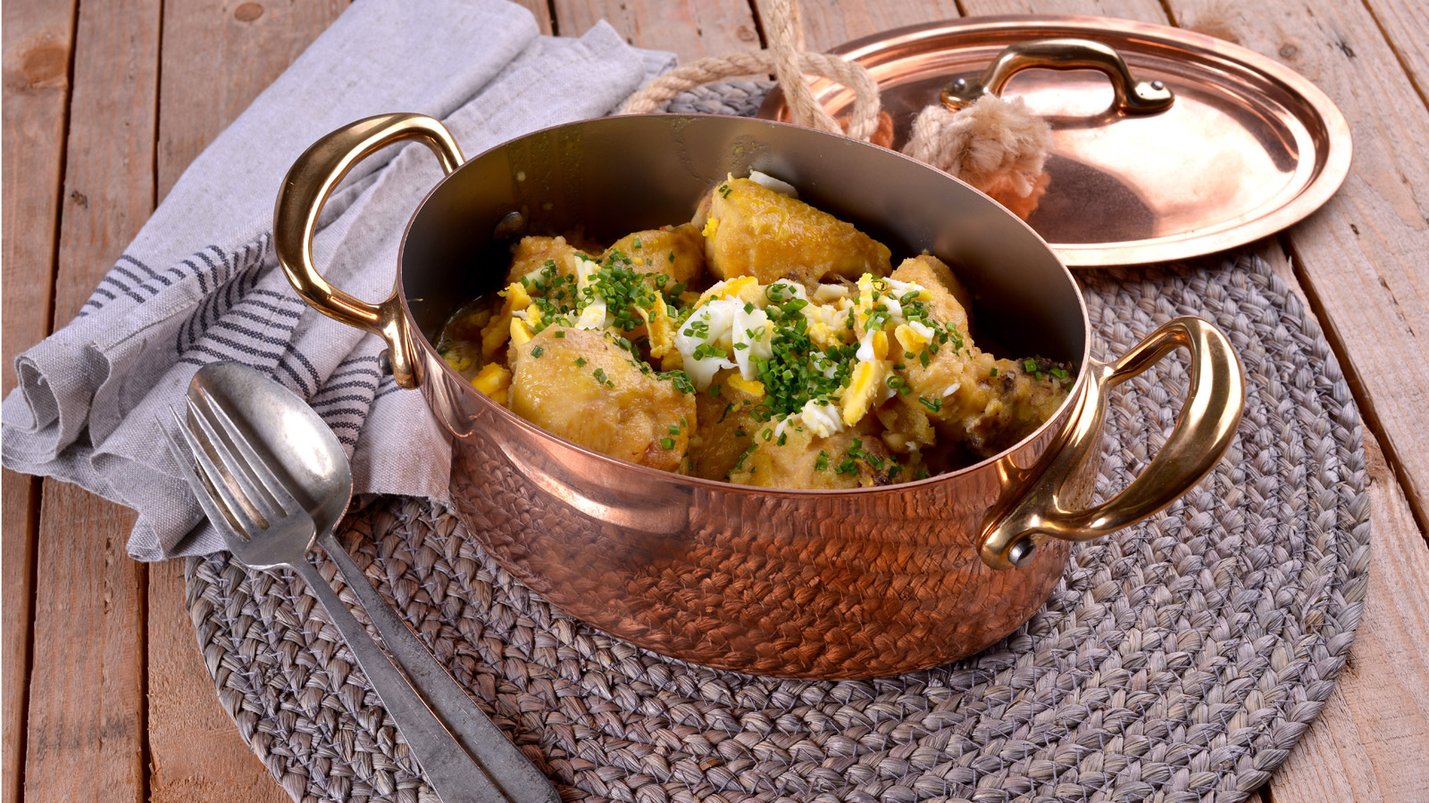 En el capítulo 33 del programa de televisión Sabor de Hogar T2, Juan Pozuelo prepara la receta de Pollo de corral en pepitoria con arroz blanco.