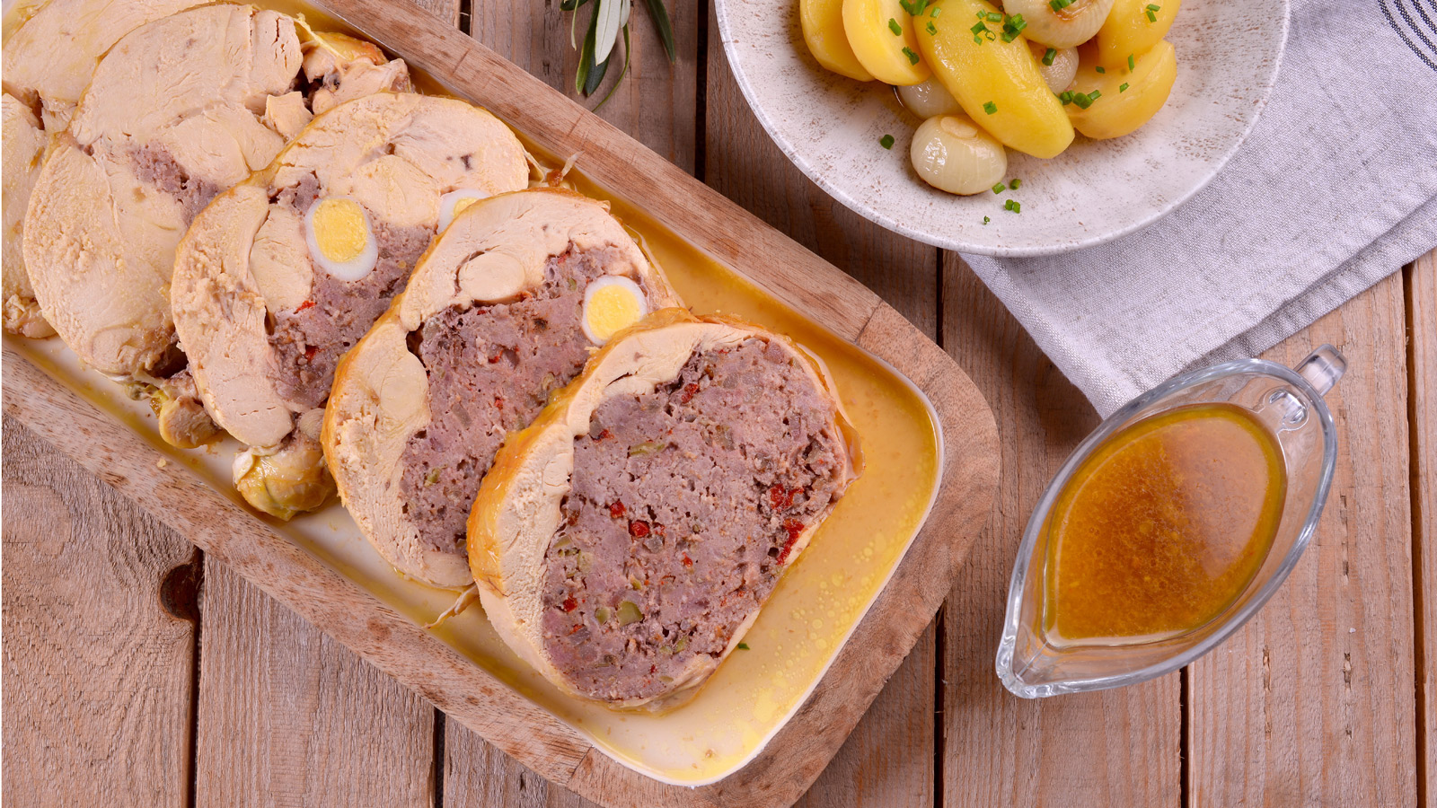 En el capítulo 25 del programa de televisión Sabor de Hogar T2, Juan Pozuelo prepara la receta de Pollo de corral relleno.