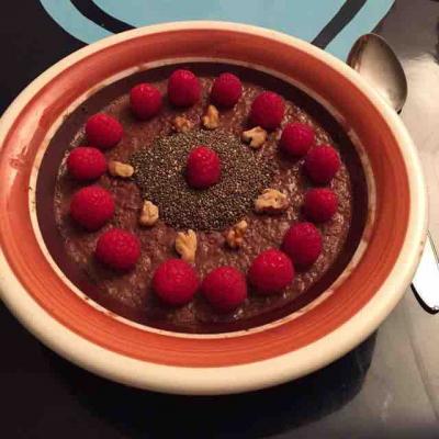 Retirar entonces del fuego, endulzar al gusto y añadir si se desea matalauva o cacao o semillas de chía remojadas y mezclar suavemente.