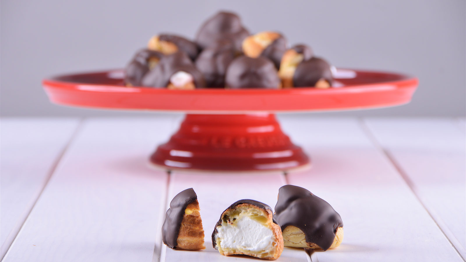 Los dejamos enfriar, les realizamos un pequeño corte y rellenamos con nata y crema pastelera.