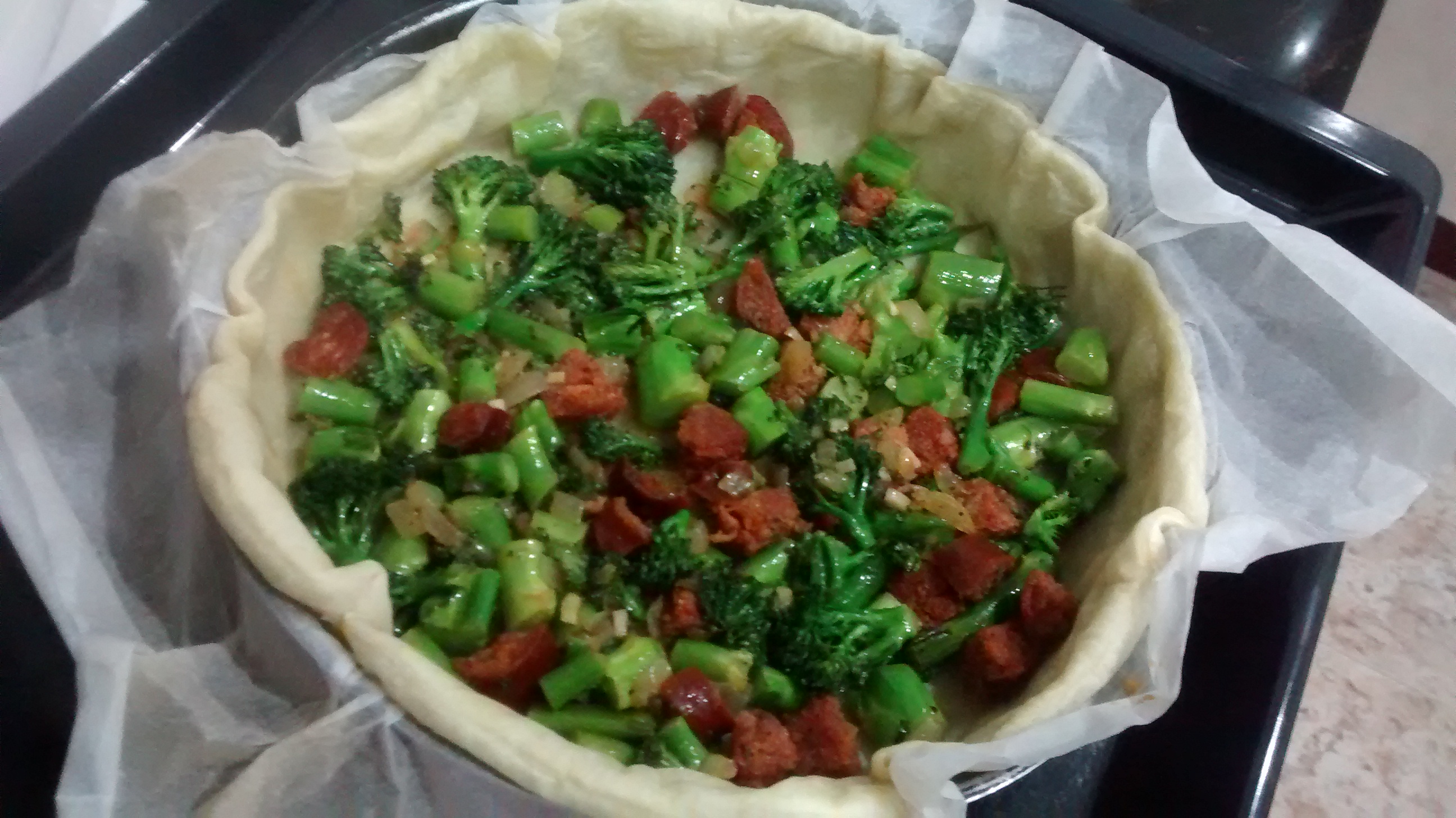 Quiche de bimi con chorizo
