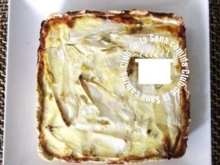 Retiramos del horno y le echamos nuestra mezcla de endivias , yogur, queso y huevo. Decoramos con las hojas enteras de endivias y llevamos al horno hasta que nos quede cocida y dorada.