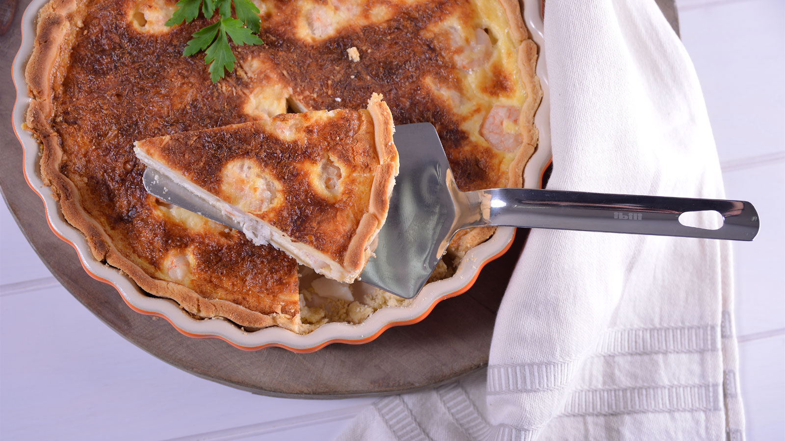Quiche de merluza y langostinos